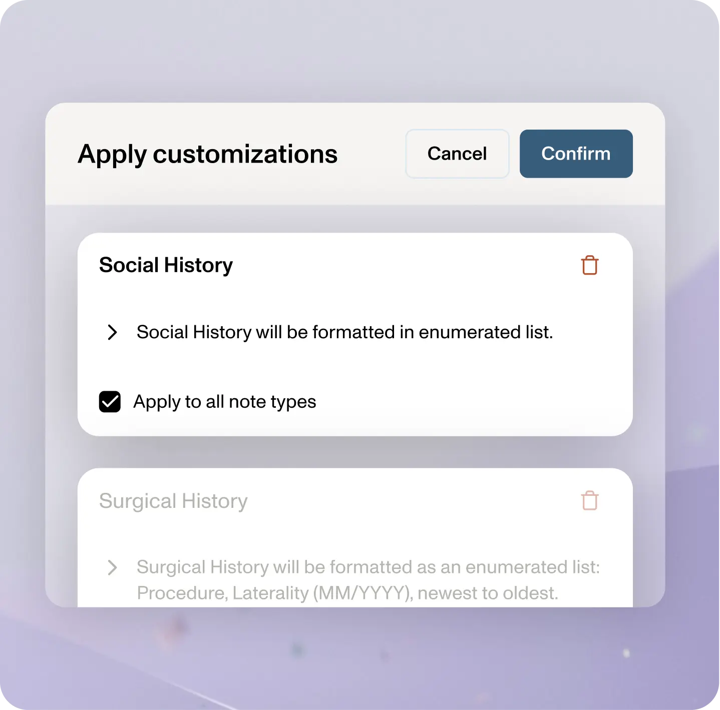 DeepScribe learns from the changes you make to your notes, then proposes customizations for future notes. Your preferences become the default.