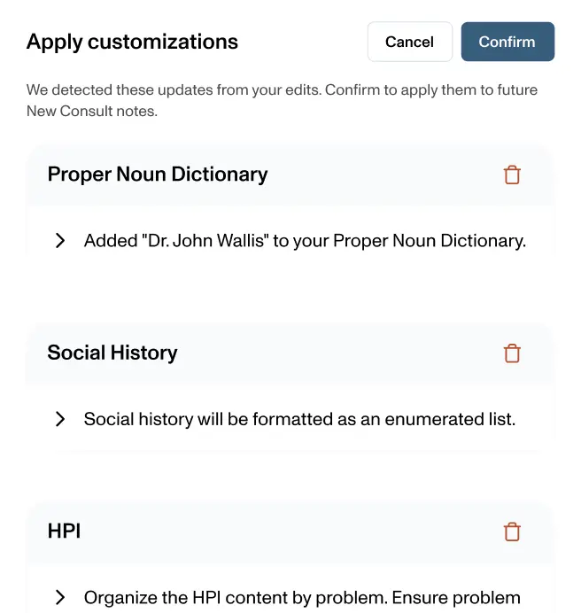 Updates are saved and applied to your very next encounter. Your AI scribe evolves as fast as your practice.